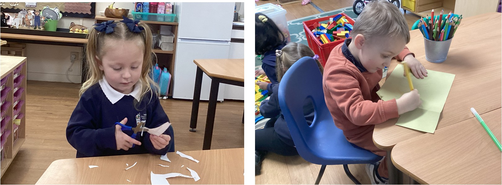 This week we have been practising holding scissors correctly and cutting out winter themed pictures. We also remembered to "nip, flip and grip" before we picked up our pencils.