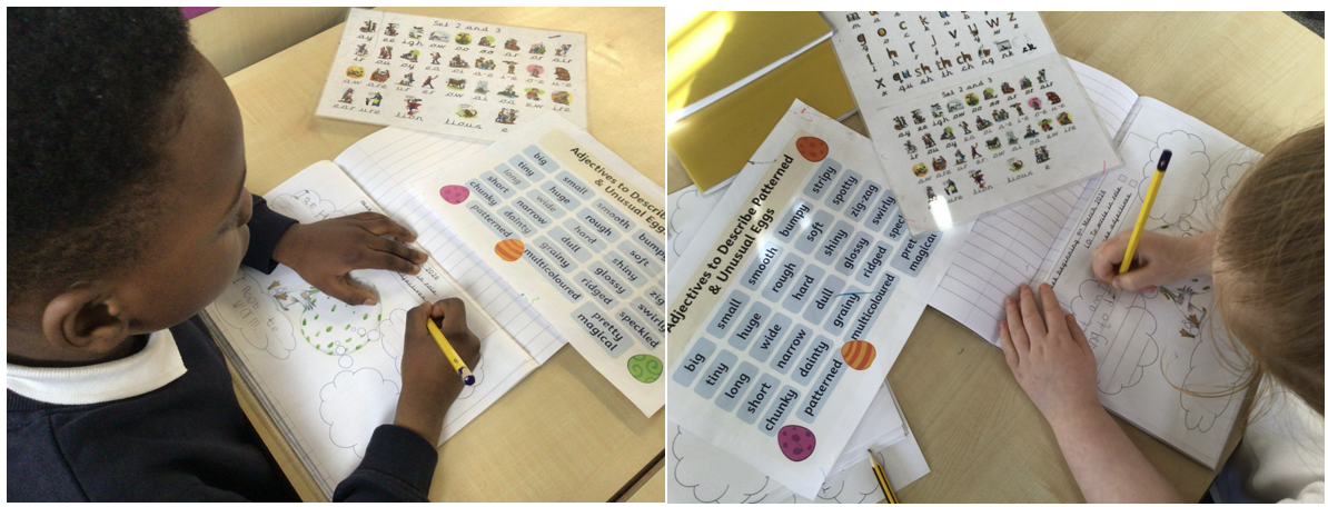 This week we began looking our our new English text, The Odd Egg by Emily Gravett. This is a wonderful tale of Duck who finds an 'odd' egg and cares for it until it hatches. The end results are surprising to say the least! The children have made predictions about what they think is going to hatch out but we are keeping them in suspense for a little longer!