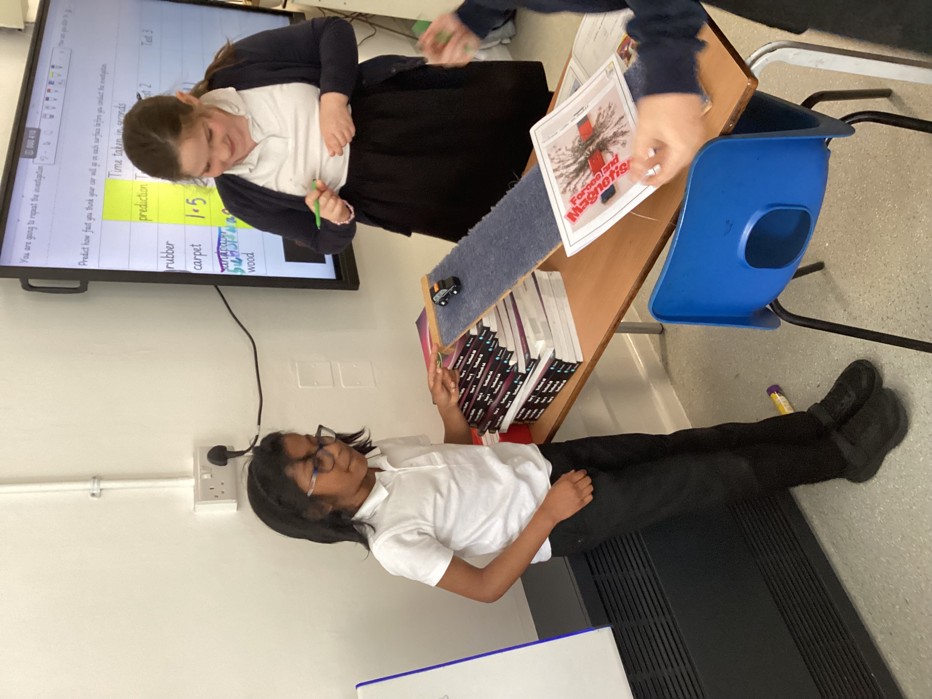 In Science, we have been working with Ms Jones on "friction" in Science by testing the impact of different surfaces on the speed of toy cars. We even managed to capture some of our experiments in action: