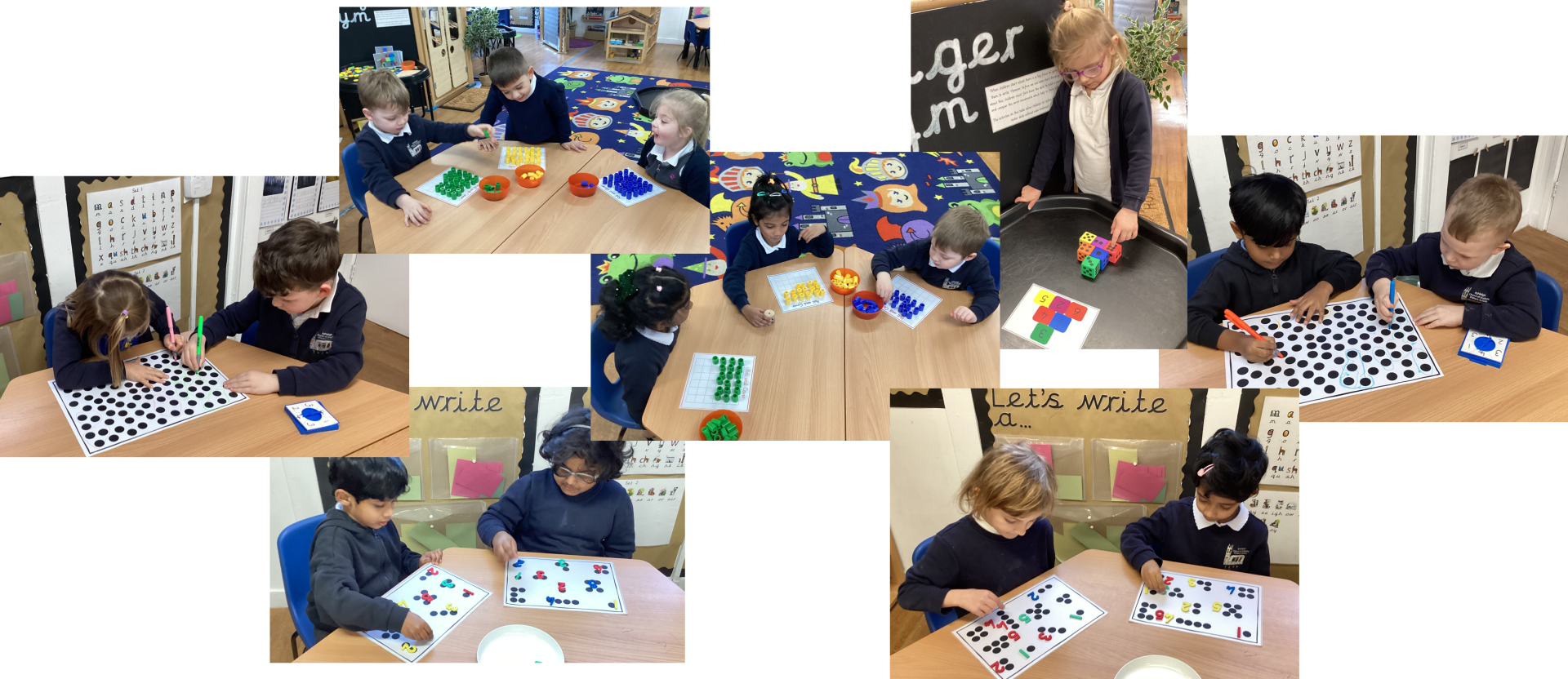 In maths, we have been practising our subitising skills and we are getting very good at recognising different amounts without the need to count. Here are some of the activities that have helped us to subitise.