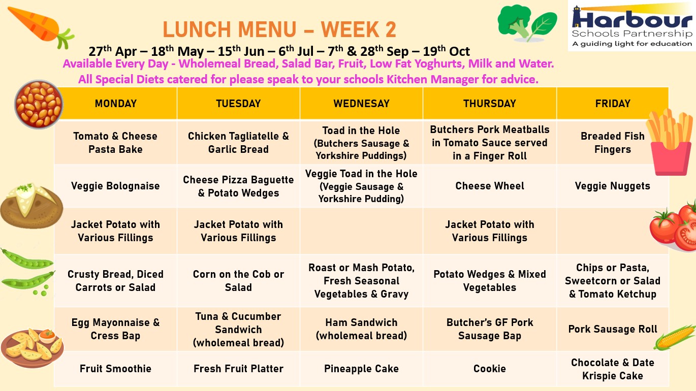 Next Week - W/C 27th April 2026 - we will be using MENU 2 |